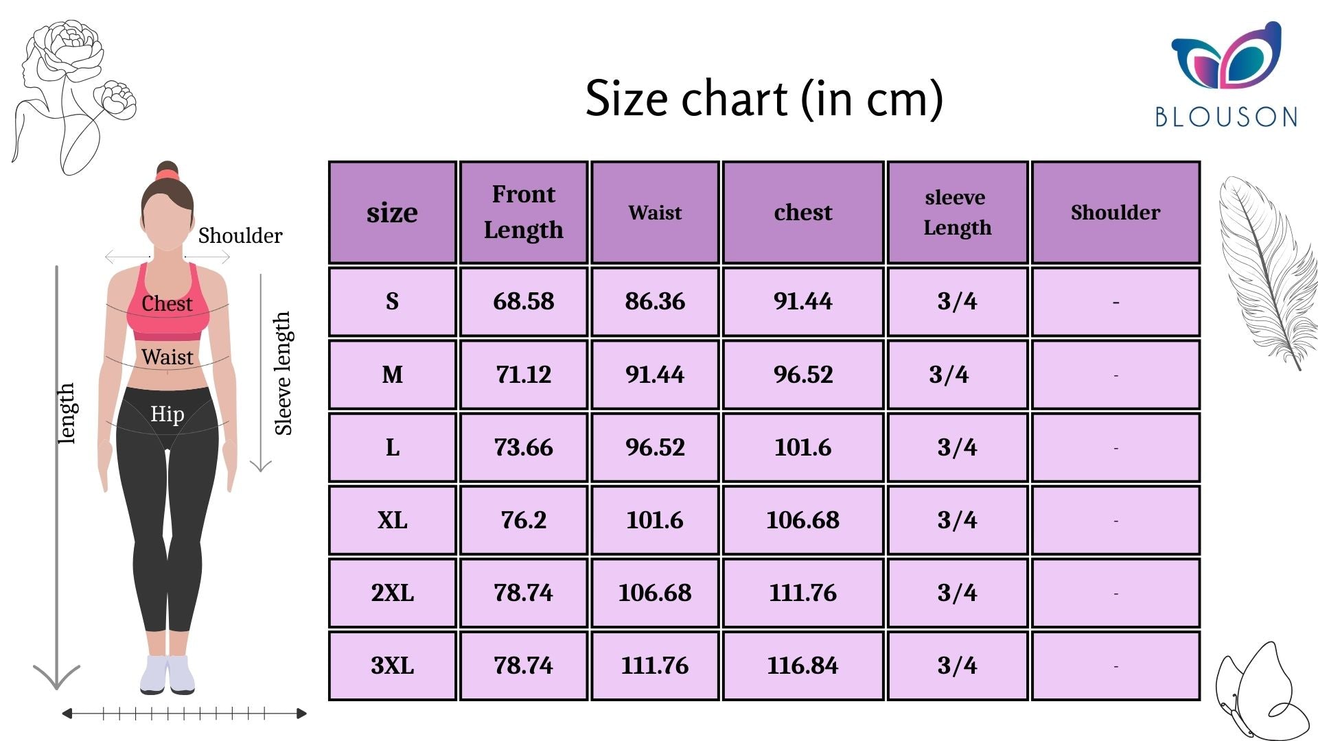 Features- Regular Sleeves, 3/4th sleeves.