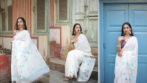 This exquisite Blue saree is a true testament to the artistry of handloom weaving. Crafted with meticulous detail, this Chain Diamond Jamdani Saree showcases the timeless beauty of traditional Indian textiles.