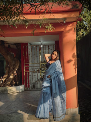 This exquisite light blue saree showcases the timeless beauty of handloom Jamdani artistry. Crafted with meticulous detail, the Starbox Jamdani Saree features delicate motifs woven directly into the fabric, creating a subtly textured and visually stunning effect.